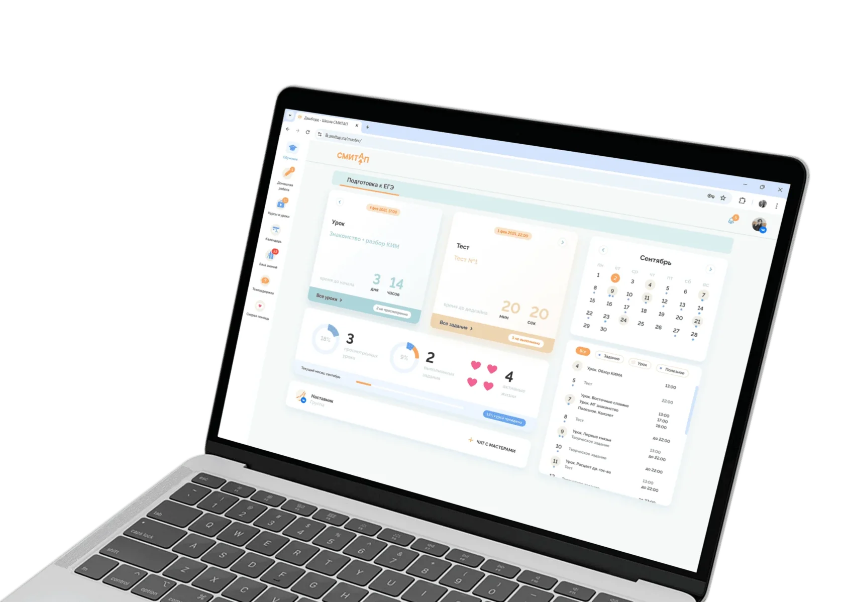 Мы создали свою обучающую платформу, на которой можно выполнять домашку, смотреть уроки и следить за прогрессом